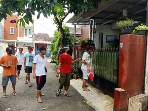 Klikterus.com-Tangsel-Warga Perumahan Villa Dago Tol RT 11/19 Kelurahan Serua, Ciputat terus bergotong-royong mencegah penyebaran Covid-19. Upaya yang dilakukan warga diantaranya berbagi masker dan sanitazer ke warga lainnya.