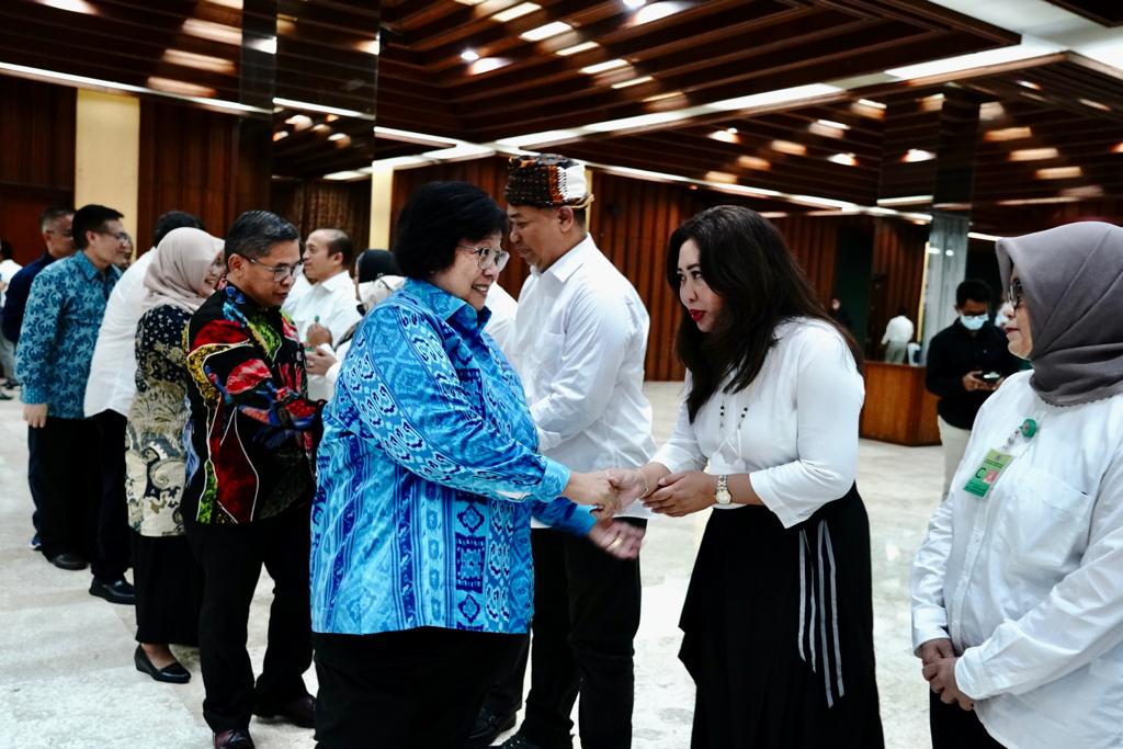 Jakarta – Menteri Lingkungan Hidup dan Kehutanan (LHK) Siti Nurbaya mengukuhkan Presidium Dewan Kehutanan Nasional (DKN) periode 2022-2027 di Jakarta, Rabu (28/12). Presidium DKN terdiri dari representasi lima stakeholder, yaitu Kamar Pemerintah, Kamar Masyarakat Adat dan Komunitas Lokal, Kamar Bisnis/Pengusaha, Kamar LSM/Pemerhati, serta Kamar Akademisi/Peneliti.