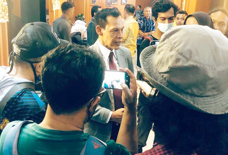 Bogor-Ade Ruhandi atau Jaro Ade menghadiri Rapat Paripurna pergantian antar waktu (PAW) anggota Fraksi Partai Golkar dari almarhum Ahmad Tohawi ke Rudi Setiawan di Gedung DPRD Kabupaten Bogor.