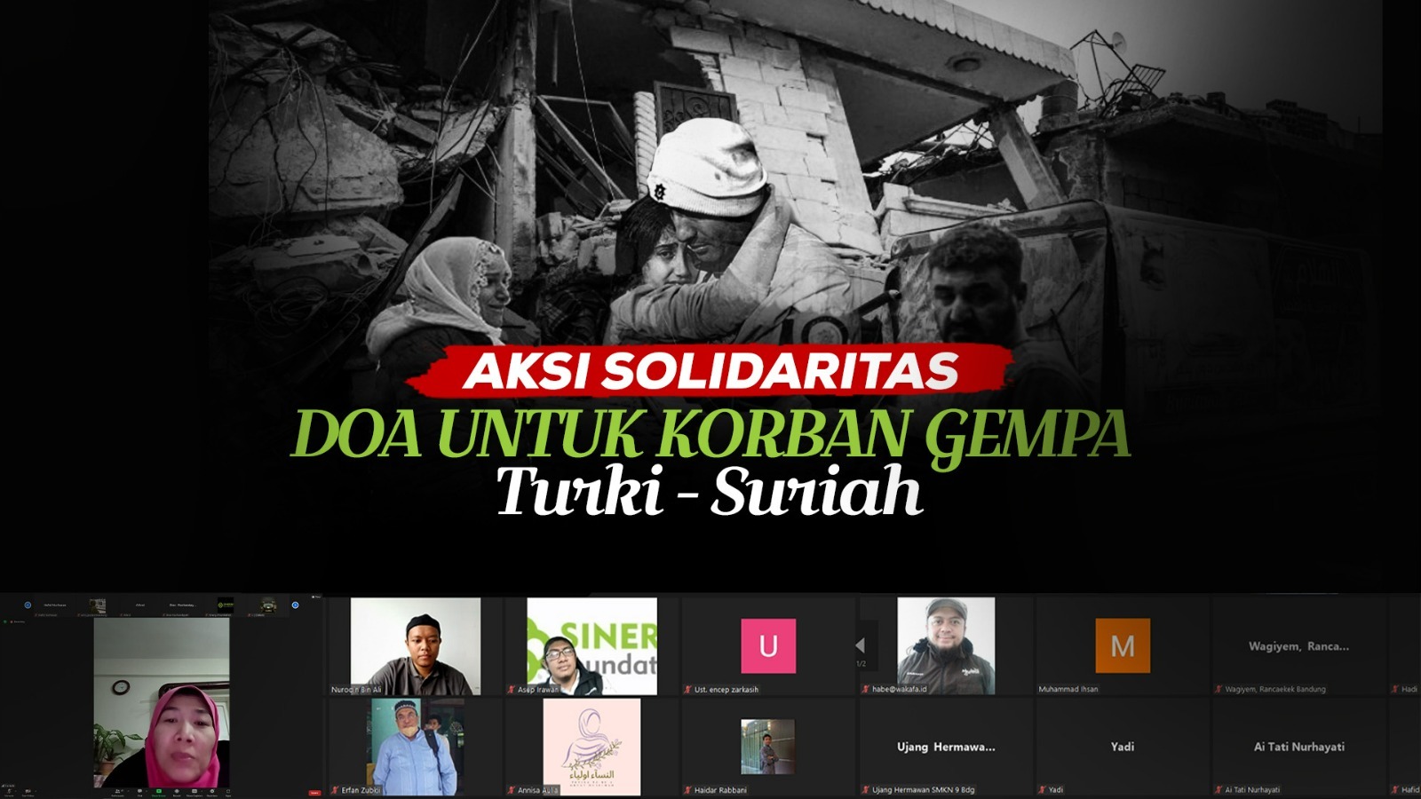 Dalam rangkaian acara tersebut, Dewan Syariah Sinergi Foundation, Ustadz Maman Surahman Lc, MA, berkesempatan memandu doa bersama dan muhasabah, pun berkesempatan menyampaikan kajian terkait dengan hikmah dari bencana. Namun tidak hanya itu, dalam kesempatan tersebut hadir seorang Warga Negara Indonesia (WNI), Ira Amiroh A, yang tinggal di Turki tepatnya di Kota Malatya menginformasikan kondisi yang terjadi di Turki.