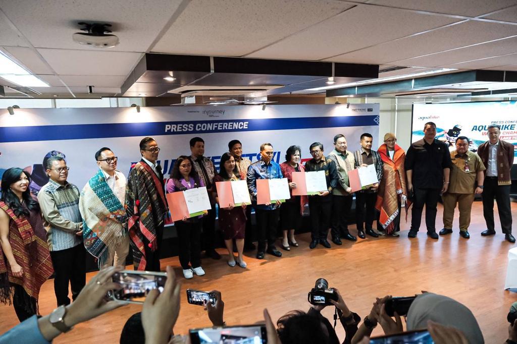 Acara ini juga diisi dengan penandatanganan naskah hibah daerah antara PT Aviasi Pariwisata Indonesia (InJourney) dengan keempat Bupati yang menjadi tuan rumah Aquabike Jetski World Championship dan disaksikan oleh Menparekraf Sandiaga Uno, Menpora Ario Bimo Nandito Ariotedjo, Wakil Menteri II BUMN Kartika Wirjoatmodjo, dan Plh Sekretaris Kemenkomarves, Odo Manuhutu.