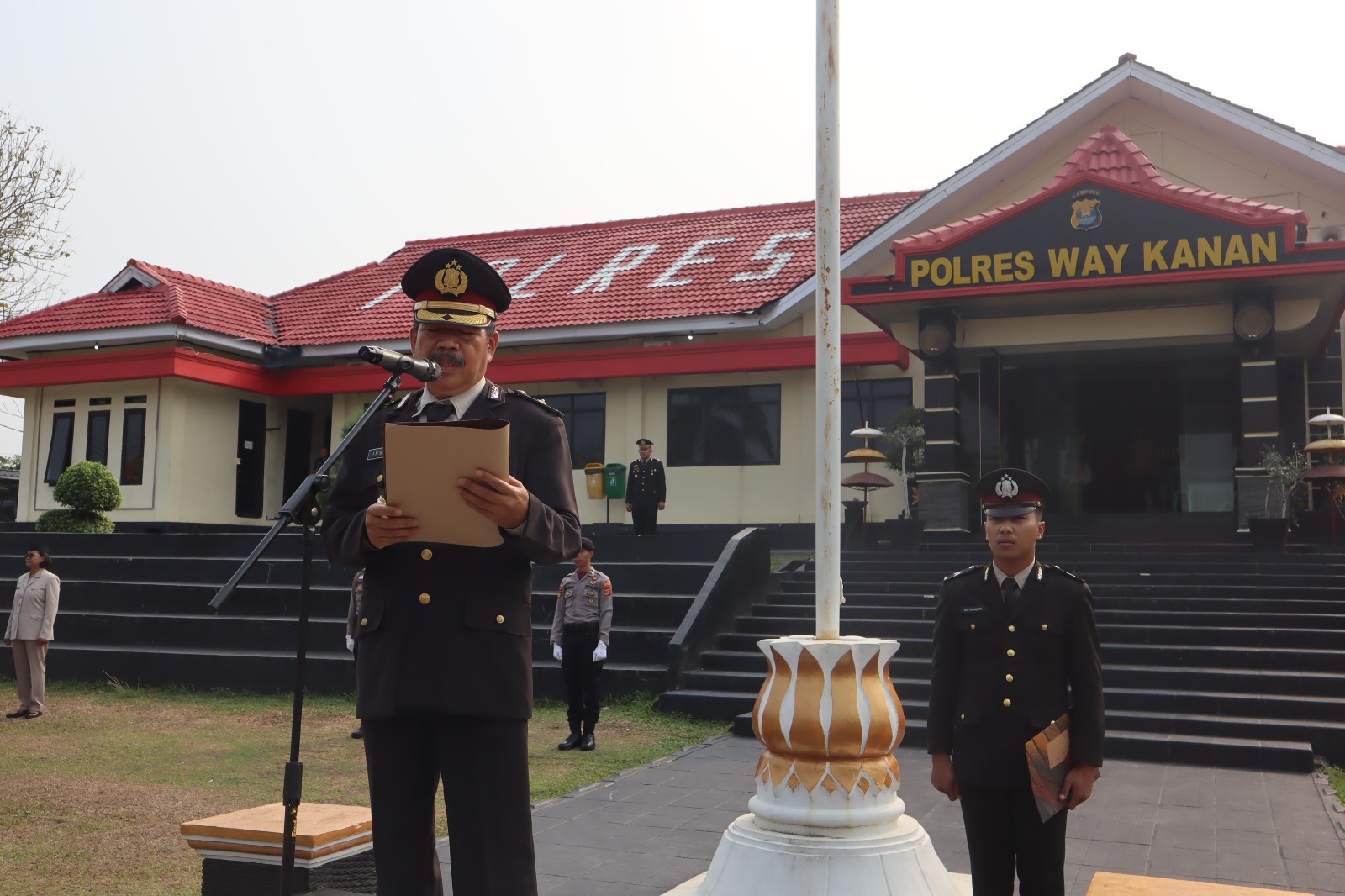 Kabag SDM Polres Way Kanan Kompol Eddy Irsan bertindak selaku Inspektur Upacara, dengan dihadiri Pejabat Utama, para Kapolsek, anggota dan ASN Polri Polres Way Kanan.