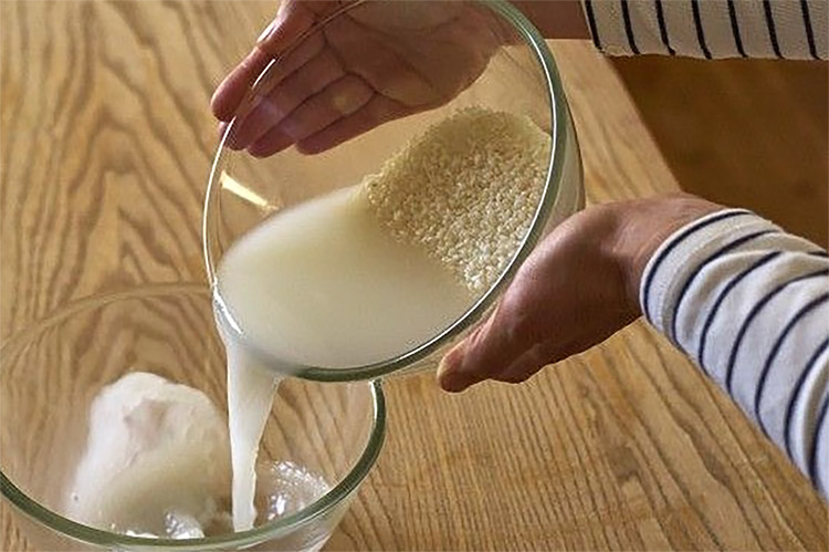 Setelah mencuci rambut dengan shampoo, bilas rambut dengan air bersih dan keringkan rambut dengan handuk hingga setengah kering. Oleskan air cucian beras pada seluruh rambut dan kulit kepala, pijat kulit kepala dengan lembut selama beberapa menit, dan biarkan selama 10-15 menit. Bilas rambut dengan air bersih hingga bersih dan keringkan dengan handuk lembut.