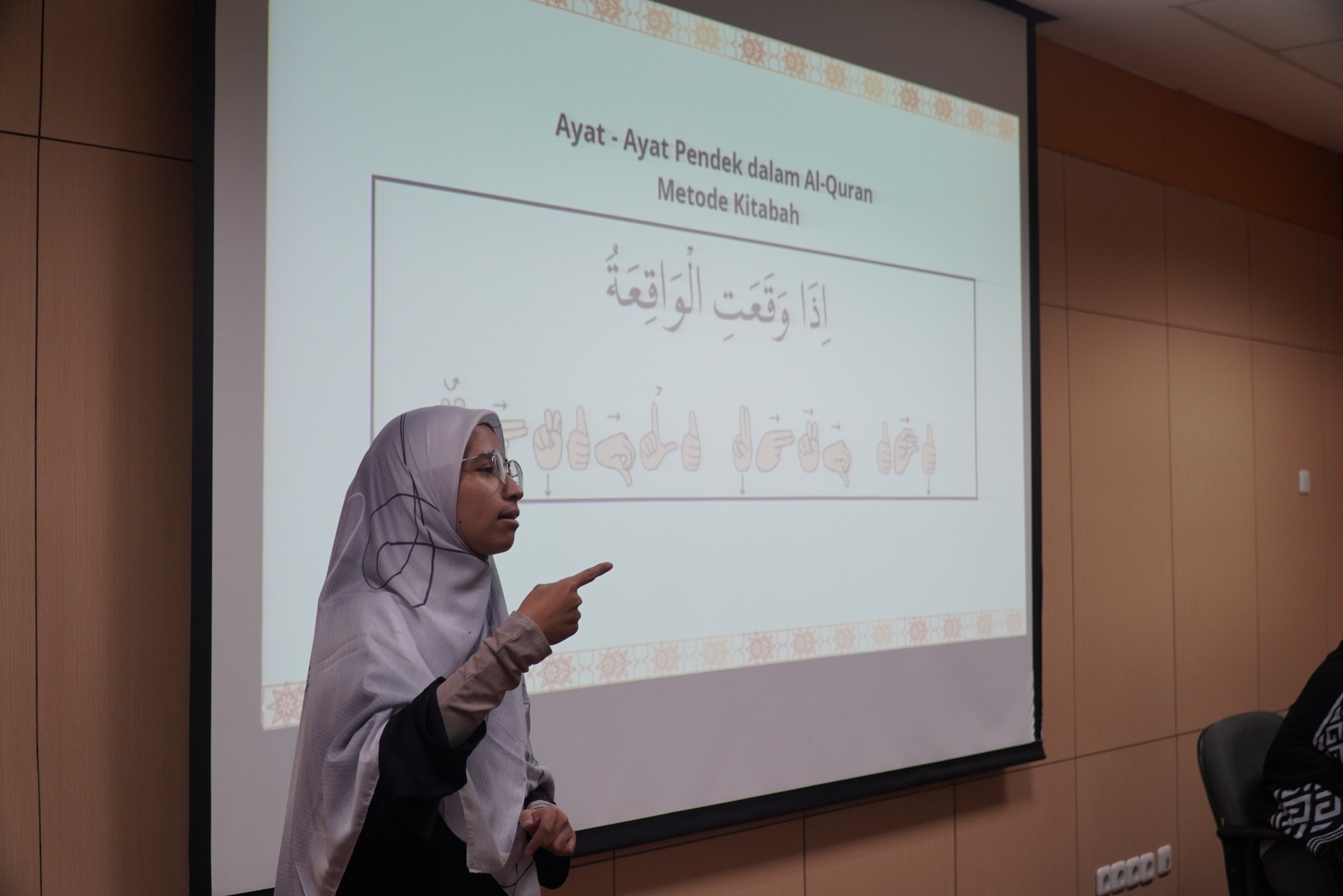 Adapun rangkaian kegiatan ToT terdiri dari pemaparan sejarah Al-Qur’an Isyarat, pengenalan bentuk isyarat dari huruf hijaiyah dan harokat, tes penguasaan materi, serta penyerahan sertifikat gelar non akademik “Certified Executive in Qur’anic Signing (C.EQS)”.